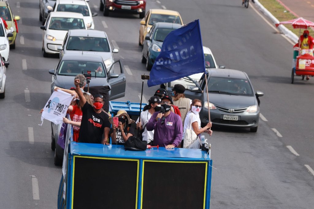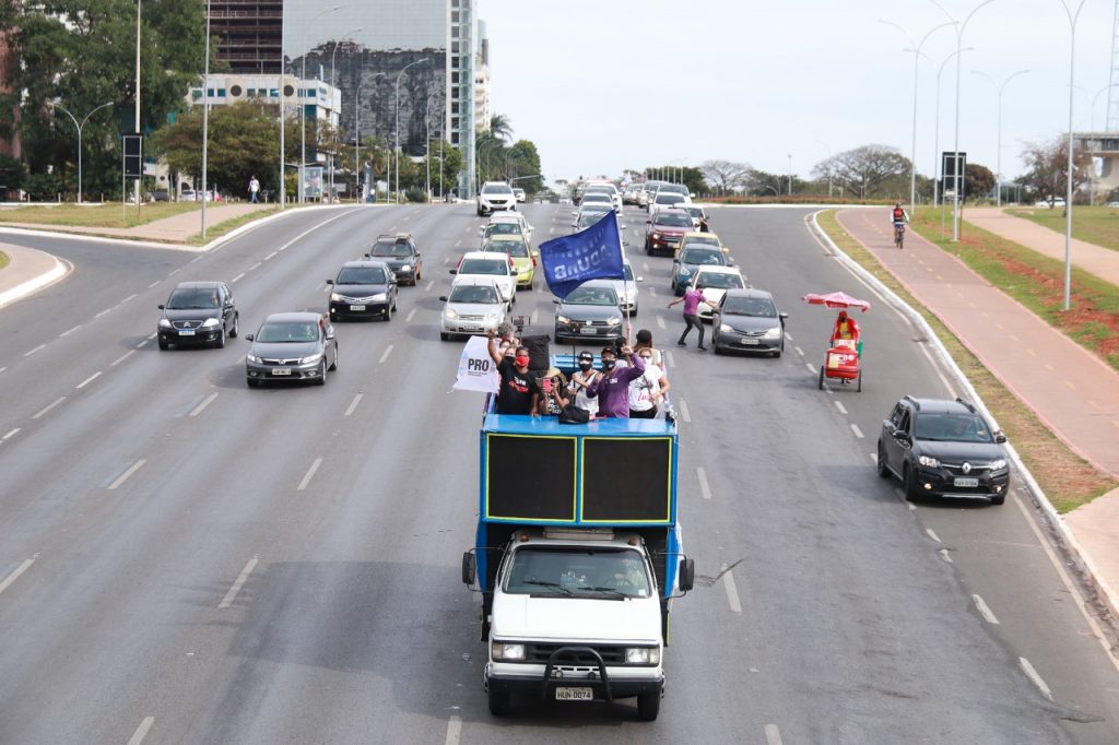No DF, bancários e bancárias saíram em carreata logo no começo da manhã. De máscara no rosto e álcool gel na mão, os trabalhadores unificaram suas vozes ao coro da sociedade civil e de integrantes de movimentos sociais para escancarar os ataques de Bolsonaro. Dentro dos carros ou a pé, respeitando o distanciamento, o que se ouviu foram críticas contundentes sobre a condução desastrosa da pandemia que vitimou mais de 460 mil pessoas.