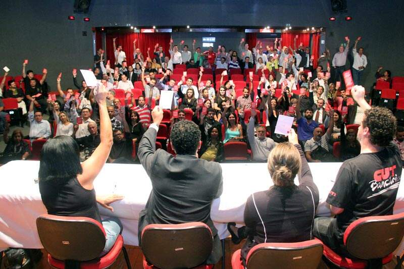 Reunidos em assembleia na sede do Sindicato, nesta quinta-feira (05), os bancários e bancárias sindicalizados, de bancos públicos e privados, trabalhadores do ramo financeiro e cooperativários elegeram 20 delegados que representarão Brasília no 4º Congresso da Confederação Nacional dos Trabalhadores do Ramo Financeiro (Contraf-CUT).