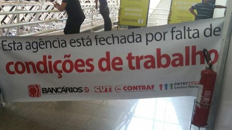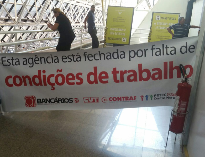 Devido à falta de condições de trabalho constatada na agência Aeroporto do Banco do Brasil, os bancários fecharam, com o apoio do Sindicato, fechar a unidade nesta quinta (1º). Diretora do Sindicato e funcionária do BB, Marianna Coelho esteve no local e verificou que um insuportável cheiro de tinta impedia os funcionários da unidade de realizar suas atividades rotineiras.