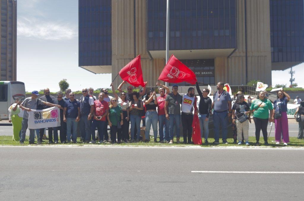 O Sindicato dos Bancários de Brasília esteve na manhã desta terça-feira, 18, ao lado de outras entidades no ato exigindo a redução das taxas de juros e pressionando a direção do Banco Central para que altere a política econômica que mantém os juros altos.