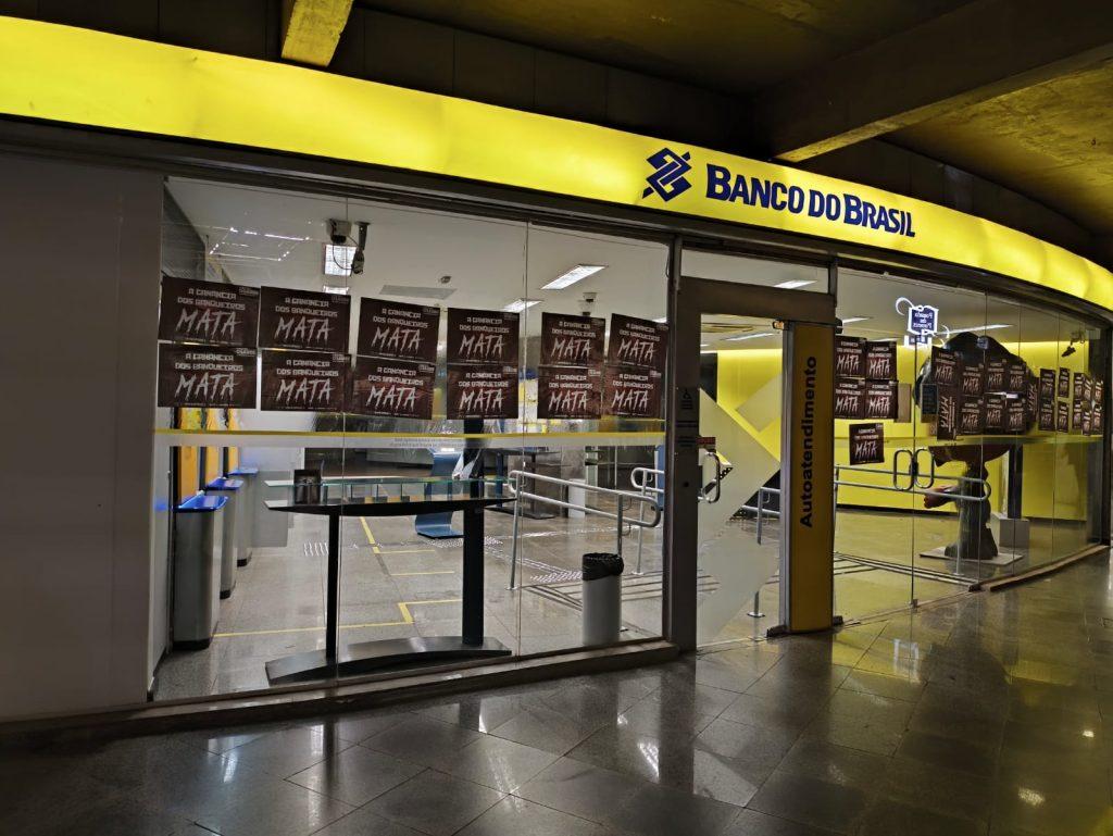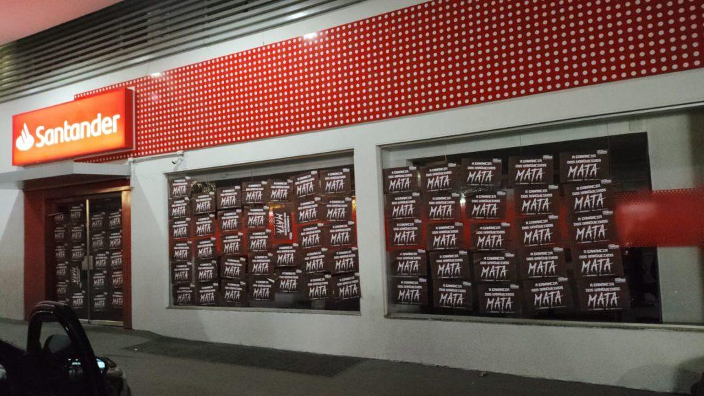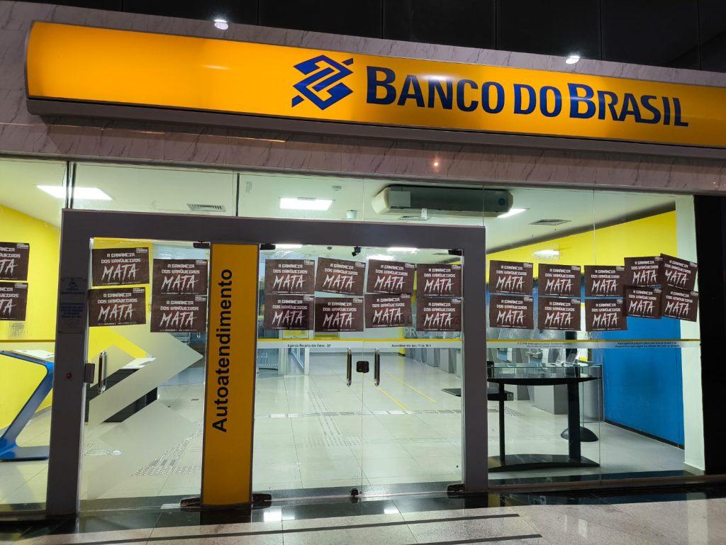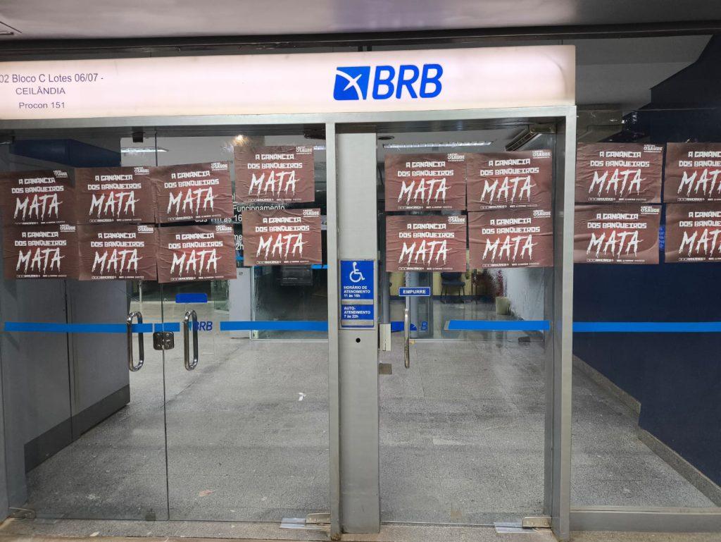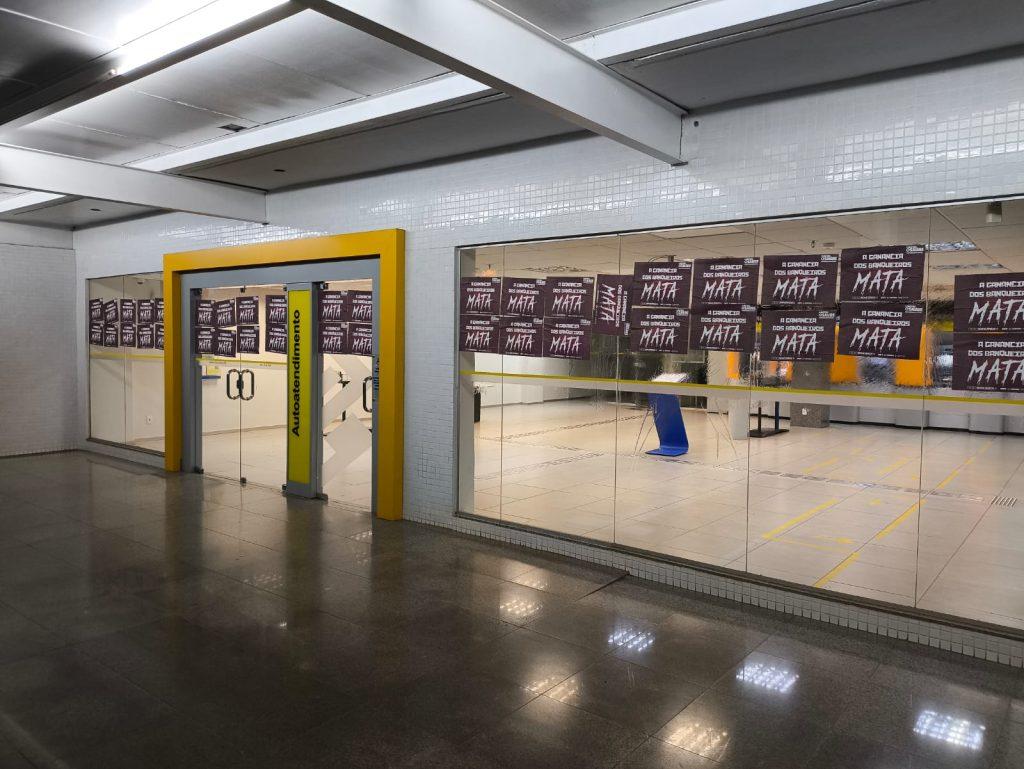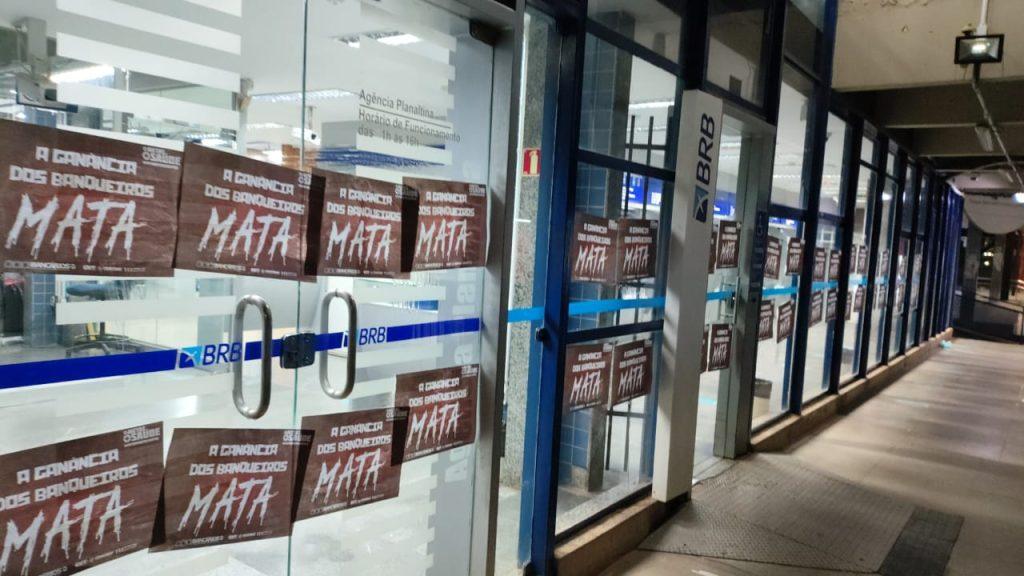 O Sindicato também realizou a colagem de milhares de cartazes nas fachadas dos bancos pelo DF, com a inscrição ‘A ganância dos banqueiros mata’, reforçando a crítica ao modelo de gestão que, pelo lucro a qualquer custo, pressiona de forma desumana os trabalhadores, de modo a causar sofrimento físico e mental.
