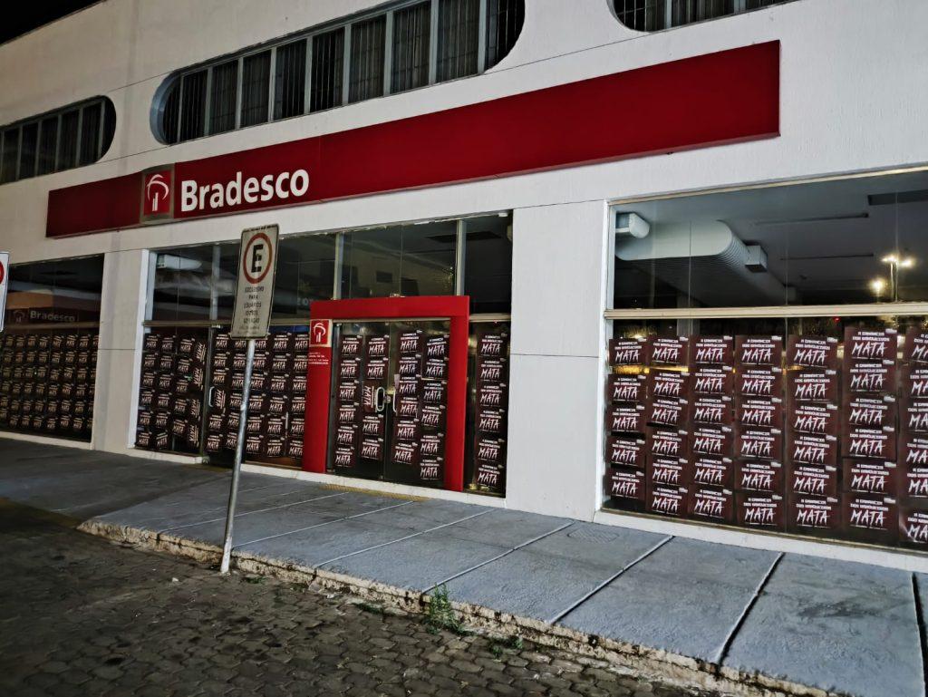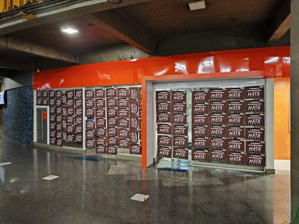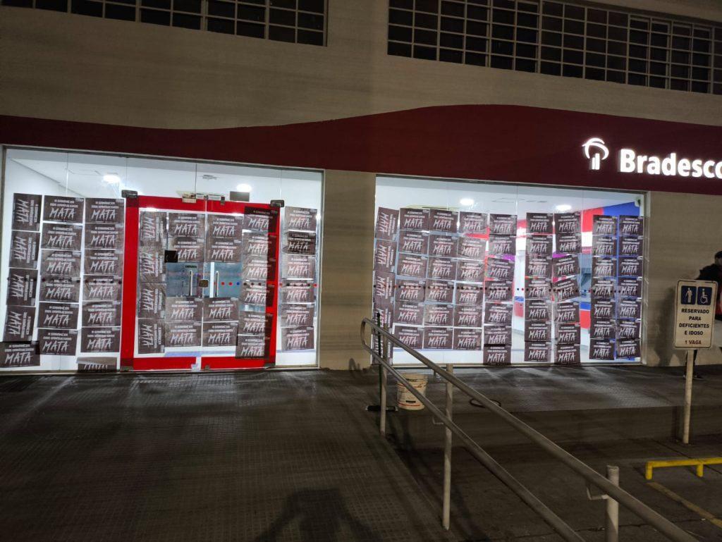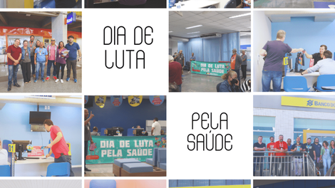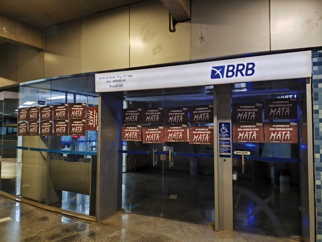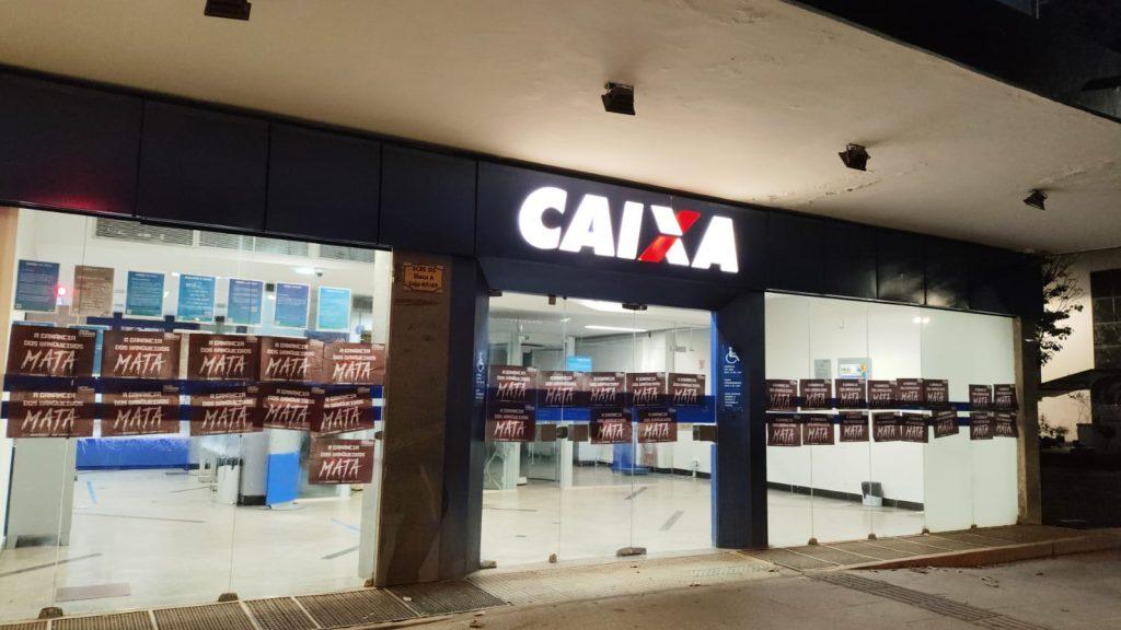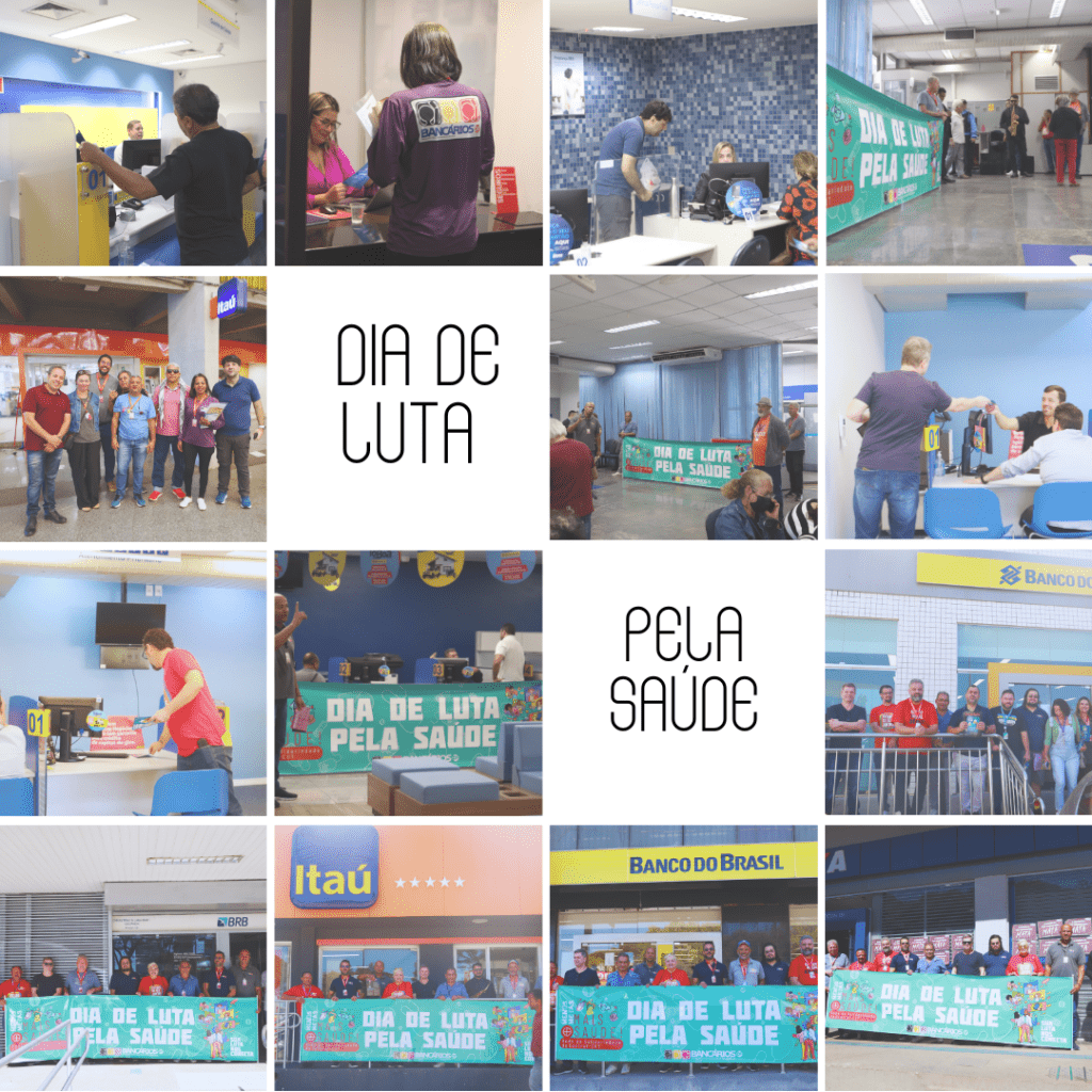 O Sindicato também realizou a colagem de milhares de cartazes nas fachadas dos bancos pelo DF, com a inscrição ‘A ganância dos banqueiros mata’, reforçando a crítica ao modelo de gestão que, pelo lucro a qualquer custo, pressiona de forma desumana os trabalhadores, de modo a causar sofrimento físico e mental.