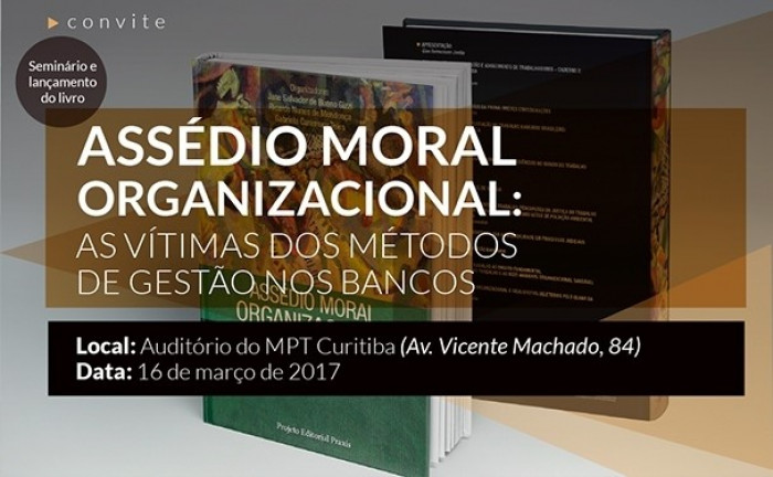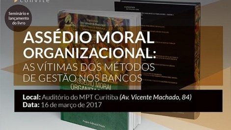 Nesta quinta-feira, 16 de março, o Sindicato dos Bancários de Curitiba e região promove um seminário com a temática “assédio moral no ambiente de trabalho”. O evento será realizado na sede do Ministério Público do Trabalho,. Na oportunidade, será feito o lançamento do livro Assédio Moral Organizacional – As vítimas dos Métodos de Gestão nos Bancos- volume II às 17 horas.