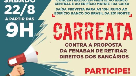 A carreata deste sábado leva à população do DF a denúncia da trama que envolve banqueiros, cúpula do governo e direções dos bancos públicos nos ataques aos direitos e conquistas históricas da categoria bancária.