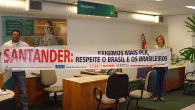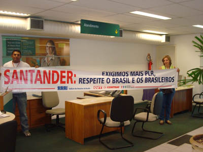 As visitas dos diretores às agências do Santander e Real foram antecedidas pela passagem de um carro de som que denunciava a situação vivida pela categoria com a diminuição de PLR e de funcionários, além da deterioração das condições de trabalho, enquanto o banco distribui milhões para acionistas e executivos. Um dos materiais de divulgação representava um “cheque” de R$ 1,4 milhão, fazendo referência ao bônus pago aos executivos dos bancos.
