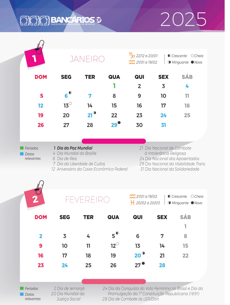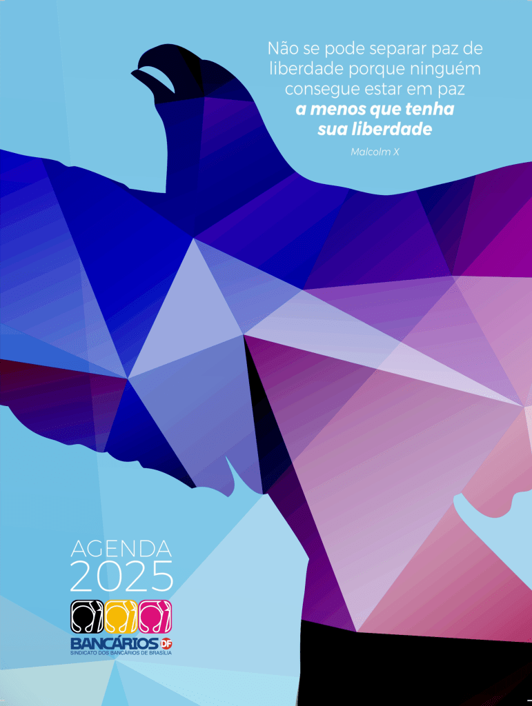 Com esta mensagem acompanhada da ilustração do vôo da Águia, o Sindicato dos Bancários de Brasília, inicia nesta semana a entrega do Caderno Agenda 2025 aos bancários e às bancárias sindicalizados.