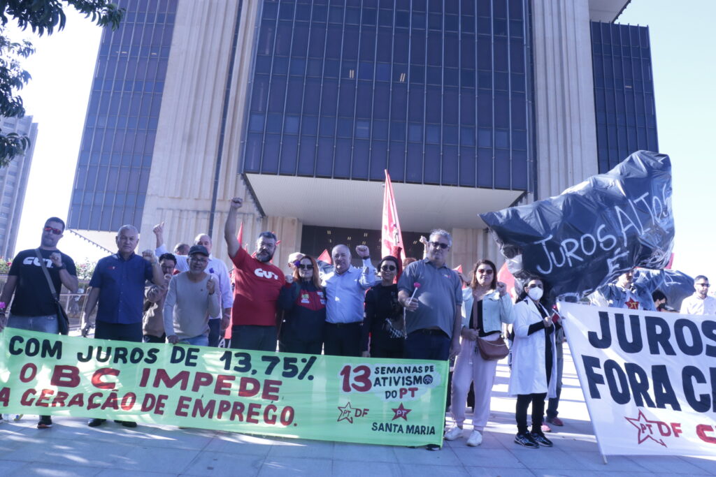 “A atual política monetária imposta pelo presidente do Banco Central, rechaçada por economistas do Brasil e do mundo, é um crime que está sendo cometido contra o país”, sustenta o presidente da CUT Nacional, Sérgio Nobre, presente ao ato no DF. “Tenha vergonha na cara, ouça o clamor da classe trabalhadora e baixe os juros nesta quarta-feira”, disparou. “Se não baixar a taxa de juros, já temos uma audiência marcada com o presidente do Senado, Rodrigo Pacheco, porque sabemos que o Senado pode afastar Campos Neto do cargo e, na nossa visão, há motivo para isso, porque o presidente do BC está sabotando o crescimento do país”, afirma Nobre, reforçando outra das cobranças dos protestos, que é a saída de Campos Neto da presidência do BC.