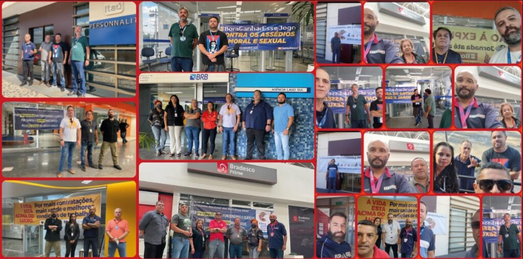 Em Brasília, a ação ocorreu pela manhã nas unidades do Centro Comercial Gilberto Salomão e do Lago Sul, onde os dirigentes sindicais dialogaram com bancários e a população, esclarecendo a resistência dos bancos em apresentar uma proposta decente que atenda aos interesses da categoria.