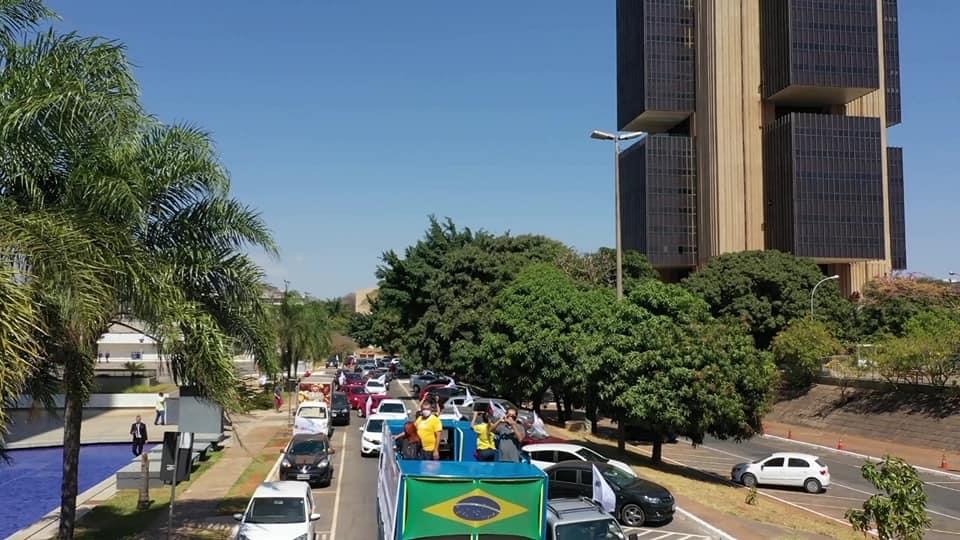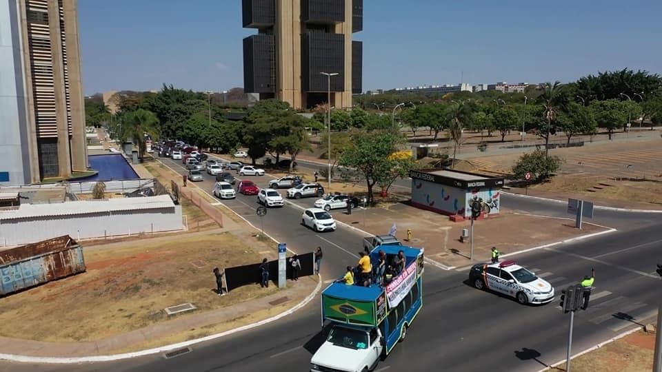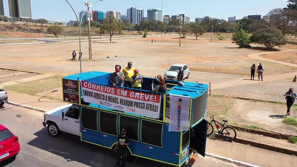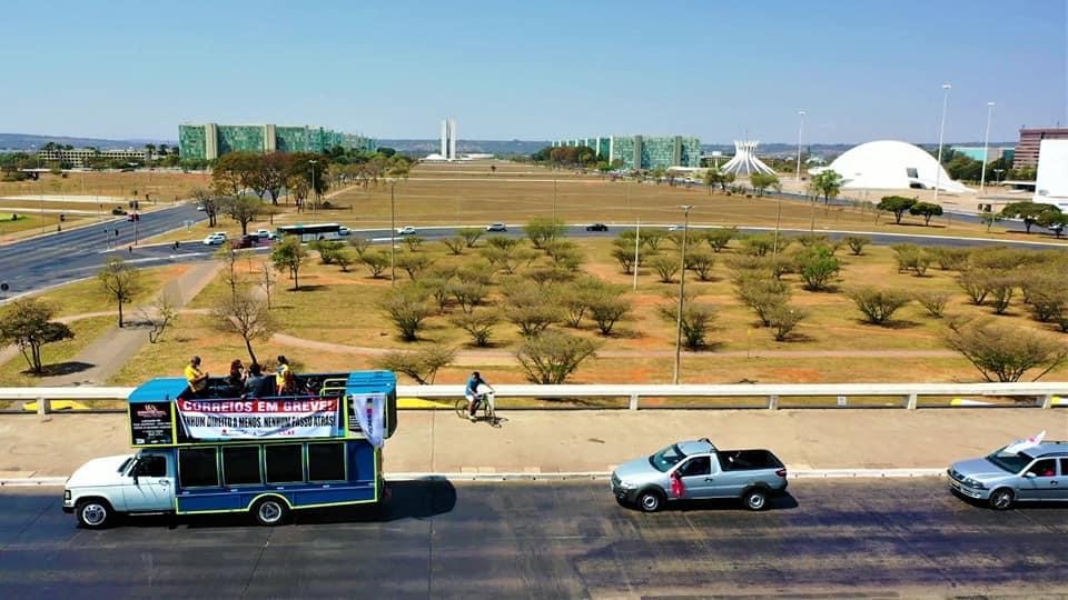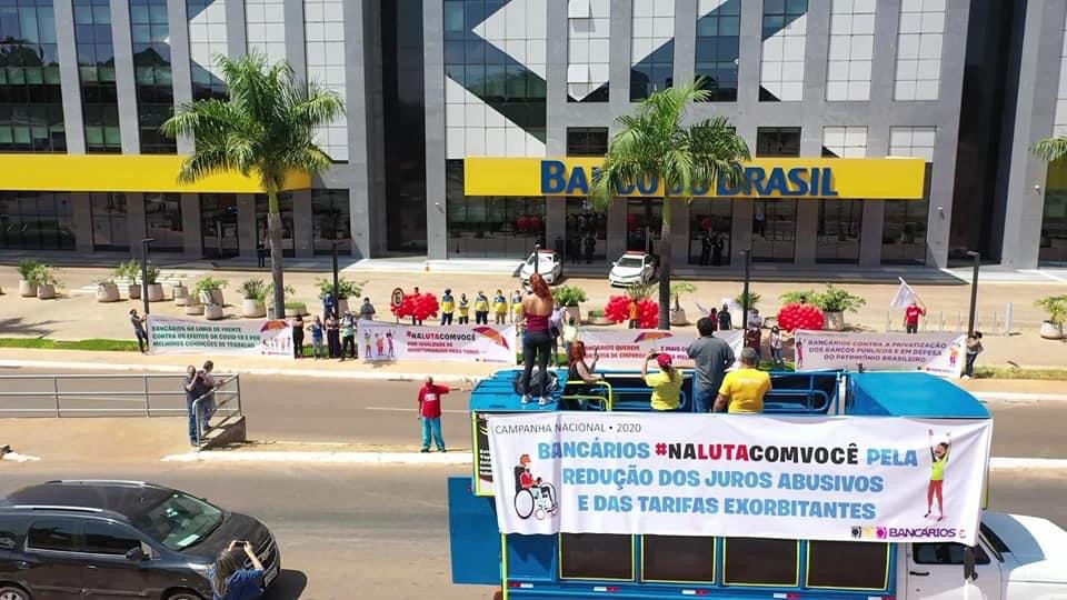A carreata teve início no Banco Central, local da concentração, de onde partiu em torno das 10h seguindo pela plataforma superior da Rodoviária em direção à L2 Norte, até chegar ao edifício Banco do Brasil da 201 Norte. Do alto de um carro de som e portando bandeiras trazendo palavras de ordem e denúncias, dirigentes bancários e ecetistas (funcionários dos Correios) chamaram a atenção da população numa das regiões mais movimentadas da capital para uma luta que é de todos os brasileiros. Atrás do veículo, os trabalhadores se manifestavam promovendo buzinaços.