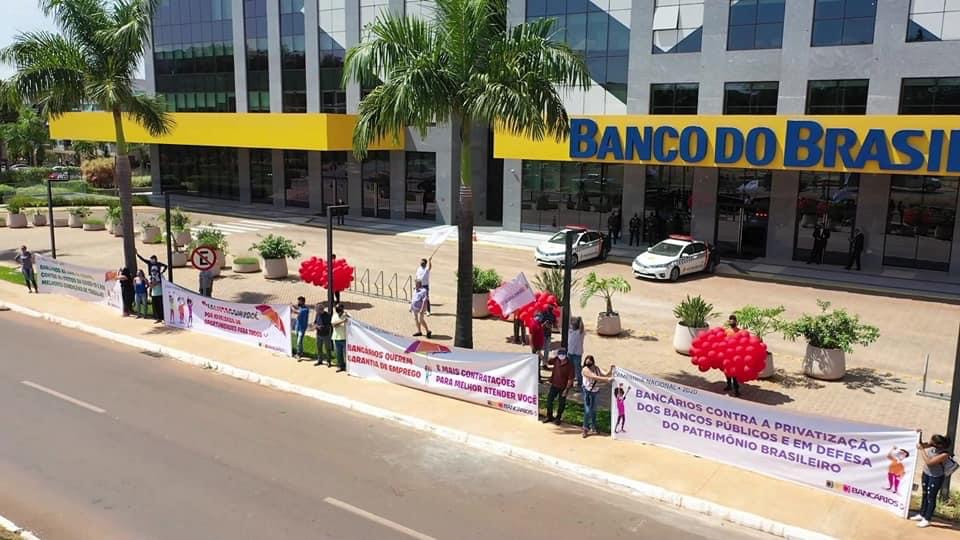 O ato, organizado pelo Sindicato obedecendo as orientações das autoridade de saúde pelo distanciamento social, faz parte do calendário de mobilização definido pelo Comando e também teve como eixo a defesa dos bancos públicos e do patrimônio nacional, contando para isso com o reforço dos trabalhadores dos Correios - que estão em greve nacional desde o último dia 18 contra a retirada de direitos e contra a privatização da estatal.