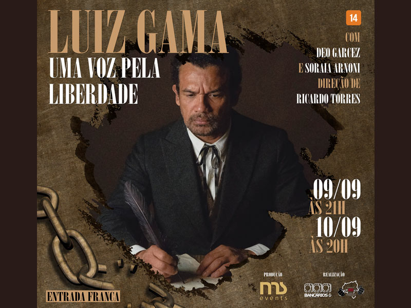 Dias 9 e 10 de setembro tem “Luiz Gama – Uma voz pela liberdade” no Teatro