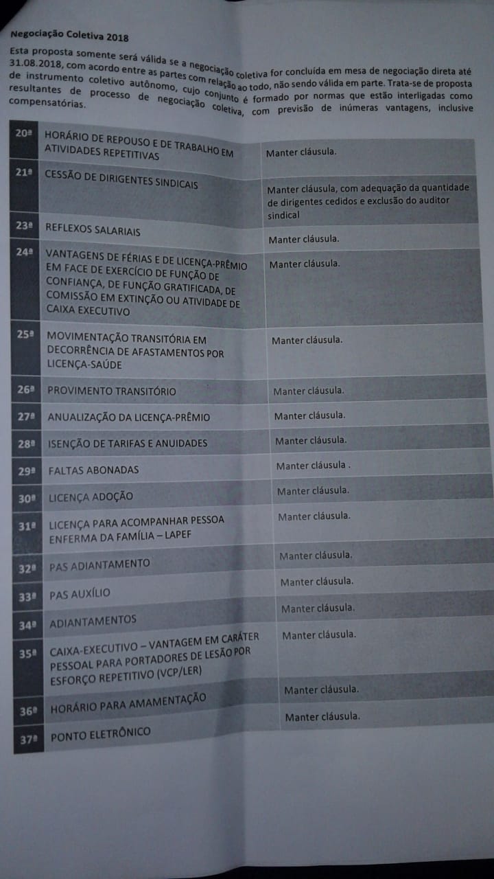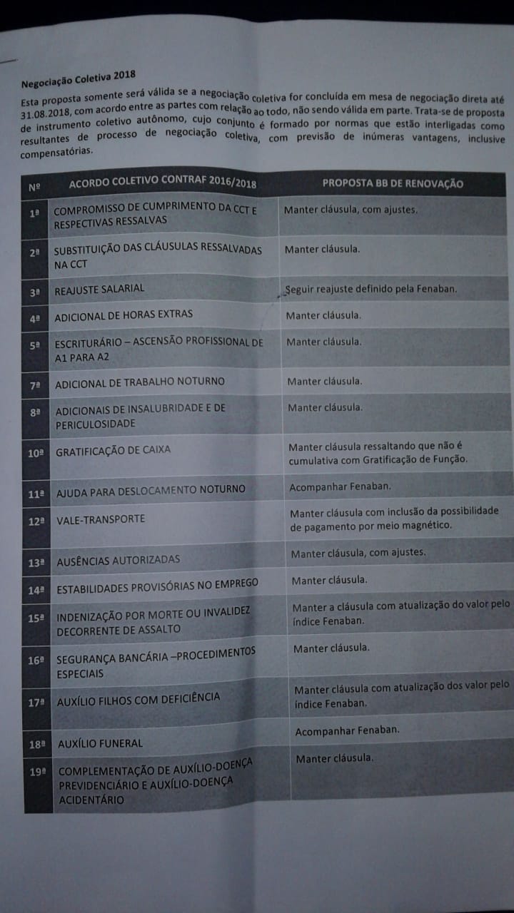 Confira a seguir a proposta de renovação do acordo coletivo aditivo apresentada pelo BB:
