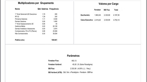 Segue abaixo a tabela de pagamento dos salários paradigma (percentual sobre o VR - Valor de Referência do Cargo.