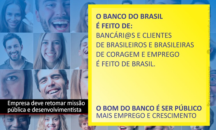 “A atual gestão abandona qualquer resquício de função pública e social do Banco do Brasil, resumindo sua missão a ‘cuidar do que é valioso para a pessoa’, frase sem significado que reduz a nada o papel de uma empresa bicentenária, cujo crédito foi fundamental para levar o Brasil a ser um dos maiores produtores de alimentos do mundo”, ressaltou o porta-voz dos funcionários do banco, arrematando que “a atual gestão”, portanto, “não está à altura do desafio que o BB terá no novo governo, que deve voltar a ser um grande banco a serviço da população brasileira e que valoriza parcerias com quem acredita no papel relevante que o país deve exercer na economia mundial”.