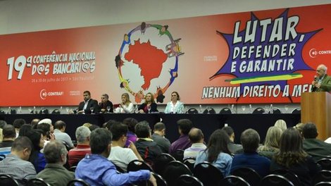 Com o mote “Lutar, defender e garantir. Nenhum direito a menos!”, a 19ª Conferência Nacional dos Bancários começou nesta sexta-feira (28), no hotel Holiday Inn, em São Paulo, e segue até o domingo (30), quando os 696 bancários, entre delegados, membros do Comando Nacional dos Bancários e observadores, vão aprovar as ações de mobilização para a difícil conjuntura nacional do governo Temer.