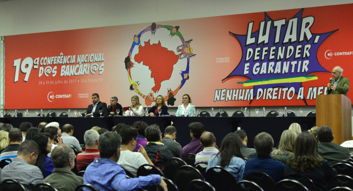 Este foi, em suma, o alerta dado pelos palestrantes da mesa “Em defesa dos bancos públicos”, no painel que abriu a programação da 19ª Conferência Nacional dos Bancários, que, sob o mote “Lutar, defender e garantir. Nenhum direito a menos!”, vai desta sexta-feira (28) até o domingo (30) no hotel Holiday Inn, em São Paulo.