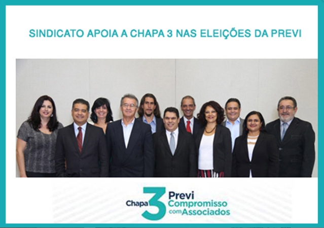 O Sindicato apoia a Chapa 3 Compromisso com os Associados porque é a única que reúne candidatos com reconhecido histórico de luta na defesa dos direitos dos trabalhadores e dos bancos públicos e com profundo conhecimento sobre as questões relativas à previdência complementar.