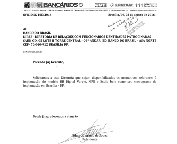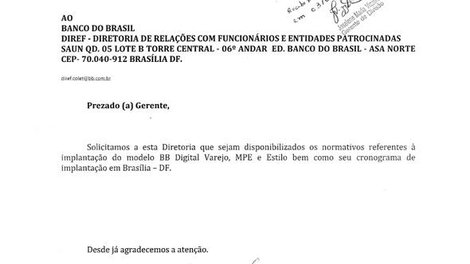 Mais uma vez, o Sindicato solicita ao Banco do Brasil esclarecimentos sobre as normas e o cronograma de implantação dos novos modelos de atendimento, especialmente no que se refere ao BB Digital. Leia aqui o ofício enviado à empresa no dia 3 (imagem acima).