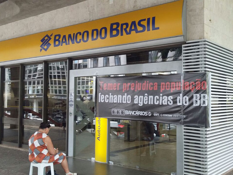 Nesta quarta-feira (7), bancários e bancárias do Banco do Brasil paralisam suas atividades por todo o país, em protesto contra a reestruturação do banco imposta pelo governo Temer.