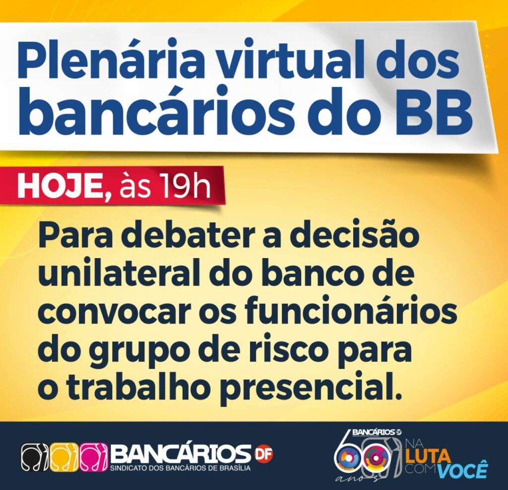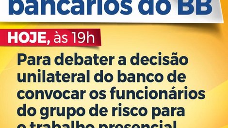 Para a direção do Banco do Brasil, não há mais que se preocupar com a contaminação pelo coronavírus. Foi assim que o Sindicato e as entidades representativas de bancários e bancárias interpretaram a medida tomada pelo banco de impor o retorno ao trabalho presencial daqueles que integram o grupo de risco da covid-19. Contra a decisão que coloca milhares de trabalhadores em risco, o Sindicato põe o assunto em discussão em plenária remota convocada para esta quinta-feira (25), às 19h.