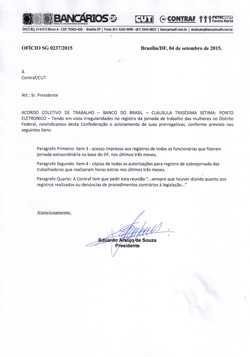 Em virtude da decisão esdrúxula da direção do BB, o Sindicato dos Bancários de Brasília encaminhou, nesta sexta-feira (4), ofício à Confederação Nacional dos Trabalhadores do Ramo Financeiro (Contraf-CUT) reivindicando o acionamento de suas prerrogativas, conforme previsto no Acordo Coletivo de Trabalho (ACT).