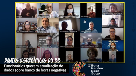 A CEBB defendeu anistia total do banco de horas negativas, ressaltando casos de trabalhadores com dívida de duas mil horas. “Os funcionários estão sendo punidos por uma situação causada pela pandemia, uma questão de saúde pública. Desconsiderar nosso pedido de anistia só porque alguns trabalhadores conseguiram pagar horas enquanto outros não estão conseguindo é um debate muito superficial. Temos que considerar as condições de cada grupo de trabalhador”, pontuou a representante dos trabalhadores do BB do Rio de Janeiro e Espírito Santo na CEBB, Goretti Barone.