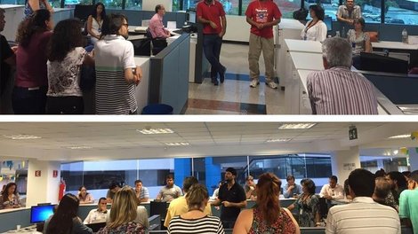 Nesta quarta-feira (17), o Sindicato visitou os funcionários do Banco do Brasil lotados no Centro de Suporte Operacional/SIA Risco União (2º e 3º andares).