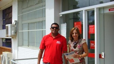 José Anílton, diretor da Fetec-CN, e Rosane Alaby, diretora do Sindicato, em frente à agência do Santander da UnB