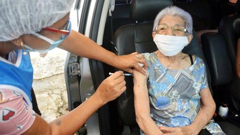 Desde que a vacinação começou, em janeiro de 2021, a adesão da população aos imunizantes foi positiva. O Brasil seguiu em seu histórico de aceitação de vacinas. No início de março, 95% dos idosos acima de 80 anos já haviam tomado pelo menos a primeira dose de um dos dois fármacos disponíveis; sendo 77,3% CoronaVac e 15,9% AstraZeneca. O percentual médio de vítimas dessa faixa etária era de 25% a 30% em 2020 e passou para 13% no final de abril. No começo de 2021, a taxa de mortalidade entre pessoas com 80 anos ou mais era 13,7 vezes maior do que para pessoasmais jovens. Esse indicador caiu para 6,9 vezes no início de abril.
