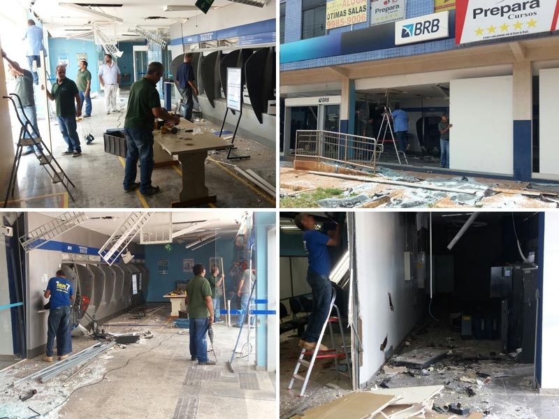 Na madrugada desta quinta-feira (19) a agência do BRB localizada no Jardim Brasília, em Águas Lindas (GO), foi invadida por bandidos. Durante a ação, os criminosos explodiram a frente da agência e arrobaram os caixas eletrônicos.