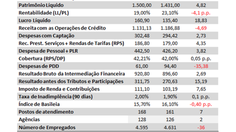 Outra informação relevante extraída do balanço refere-se ao resultado bruto da intermediação financeira, que saiu de R$896,60 milhões para R$920,80 milhões, um crescimento de apenas 2,69%. Embora as taxas de captação tenham baixado de forma importante, proporcionalmente maior do que as taxas de concessão, o resultado é pequeno, o que pode configurar pouquíssima elevação nas operações de crédito, como de resto a análise da evolução da carteira já demonstre isso.