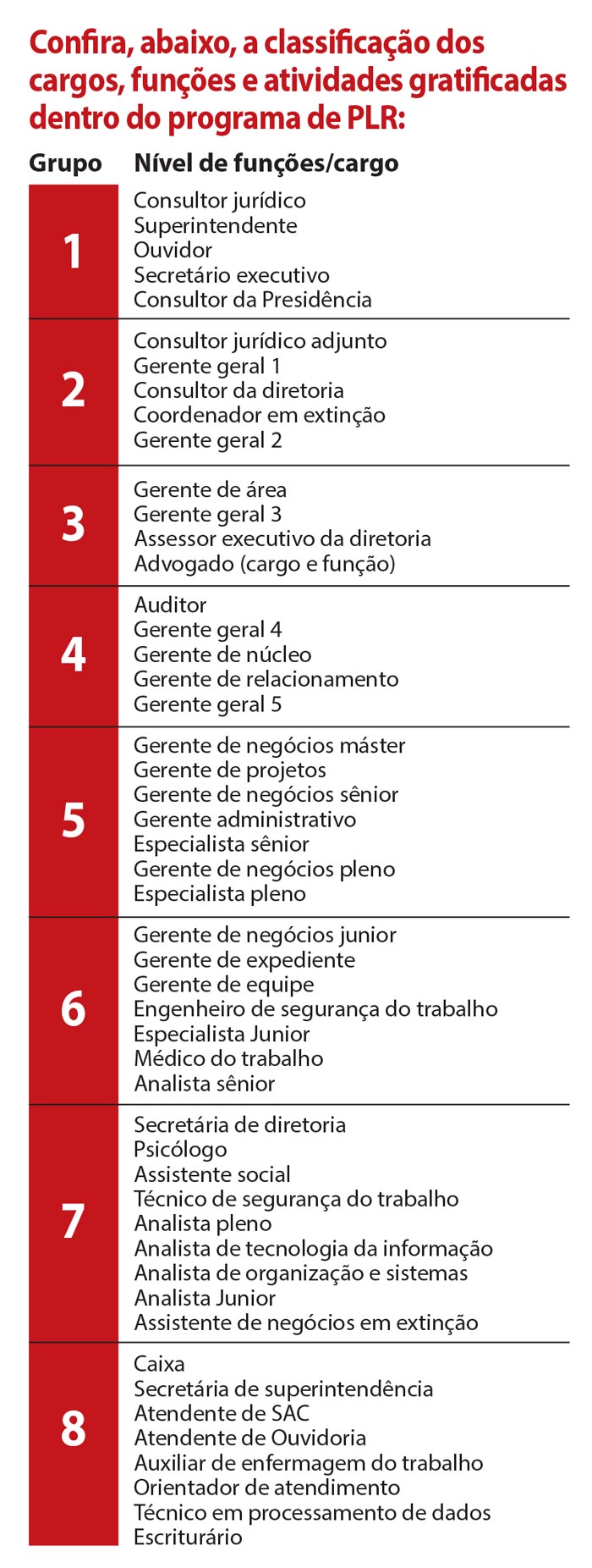 Esta PLR será paga seguindo o modelo de grupos, onde se agrupam diversas funções, conforme tem sido a prática já há alguns anos.