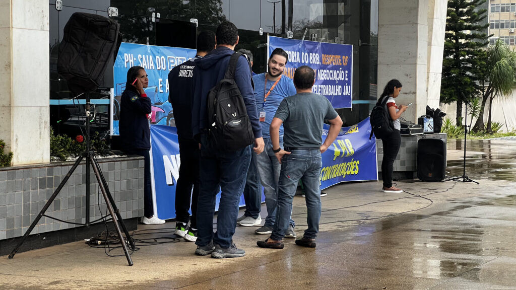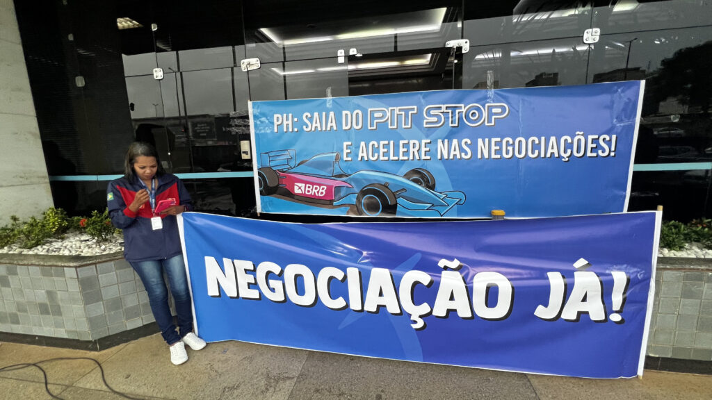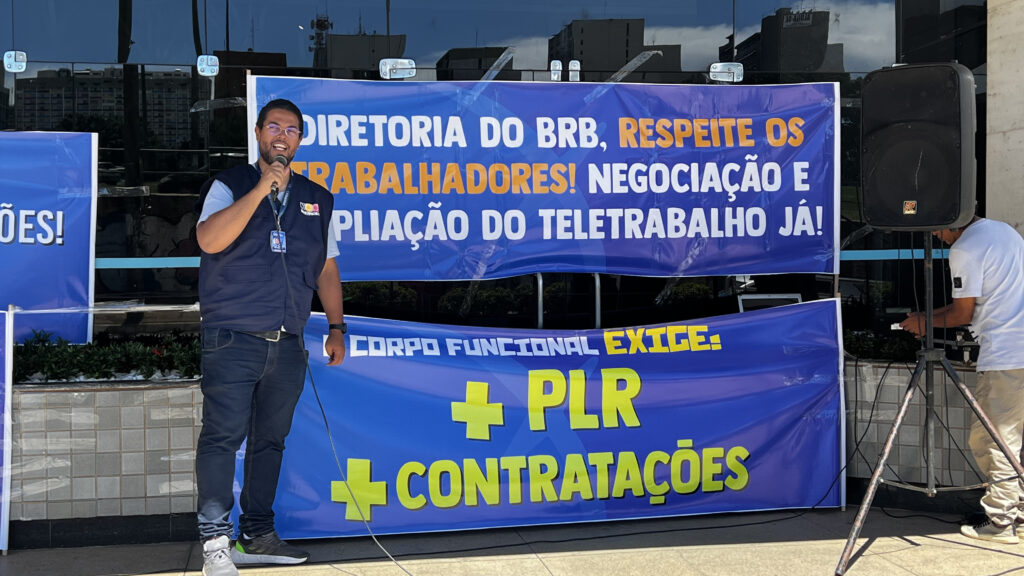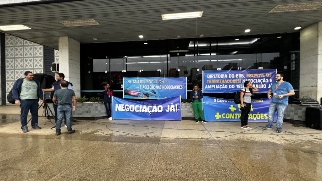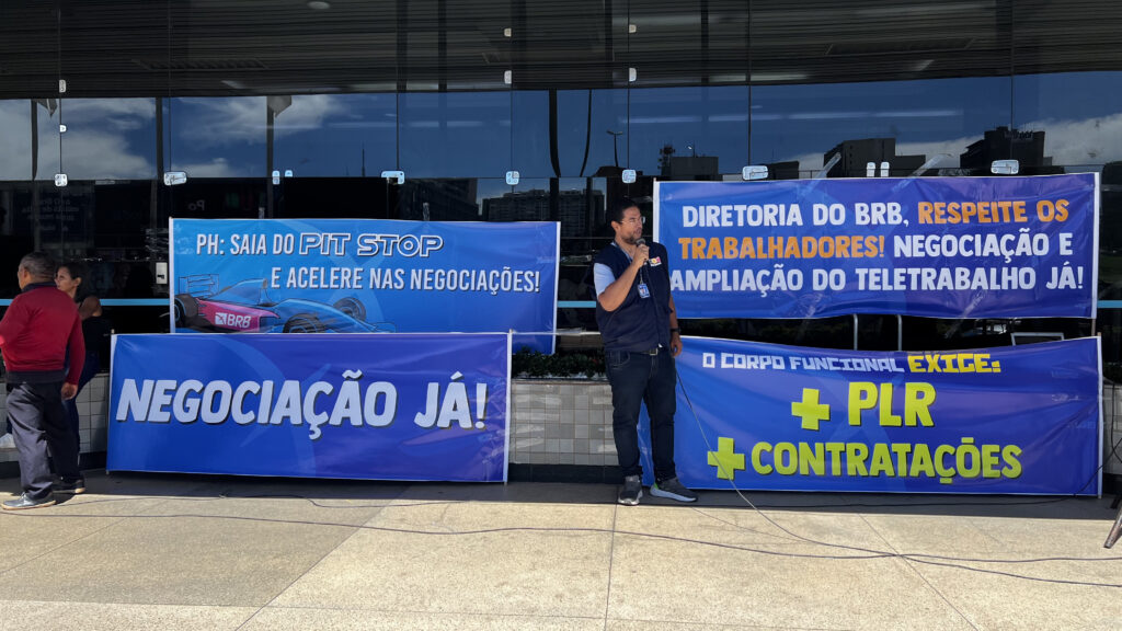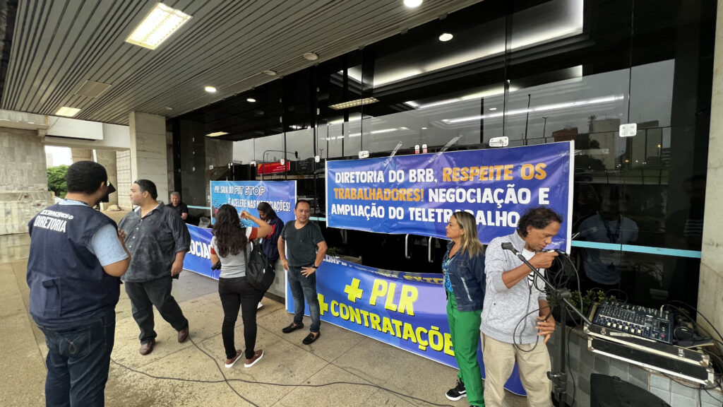 O objetivo foi denunciar a falta de respeito da direção do BRB, que se recusa a negociar pra valer normas para o teletrabalho e para o recebimento da PLR, duas pautas das quais os funcionários do banco não abrem mão, porque representam maior qualidade de vida e a real valorização daqueles que fazem o lucro da instituição.
