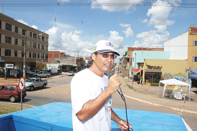 Diretores do Sindicato percorrem, em cima de um carro de som, as principais vias de São Sebastião