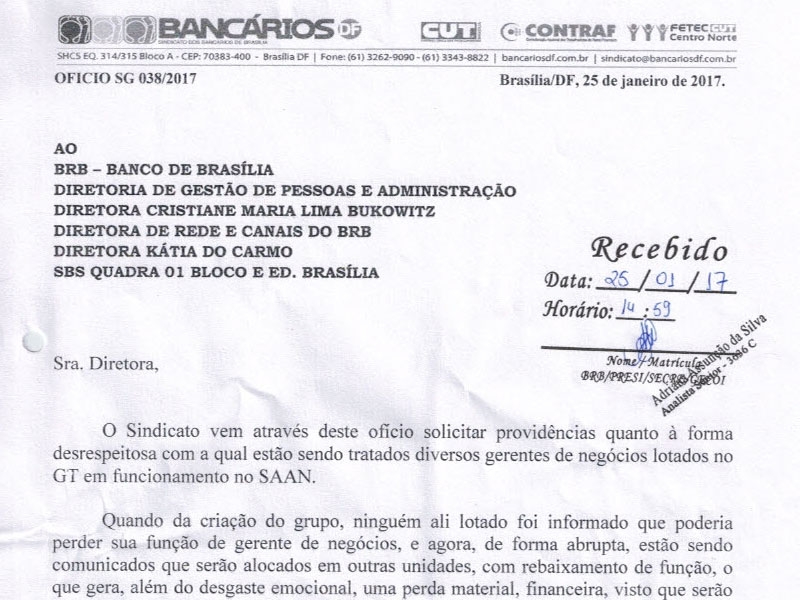 O Sindicato encaminhou ofício às diretorias de Pessoa e de Redes e Canais, solicitando providências quanto à forma desrespeitosa com que estão sendo tratados os gerentes. Também cobrou que, em casos de extinção do GT, os funcionários tenham sua condição de gerente de negócio preservada.