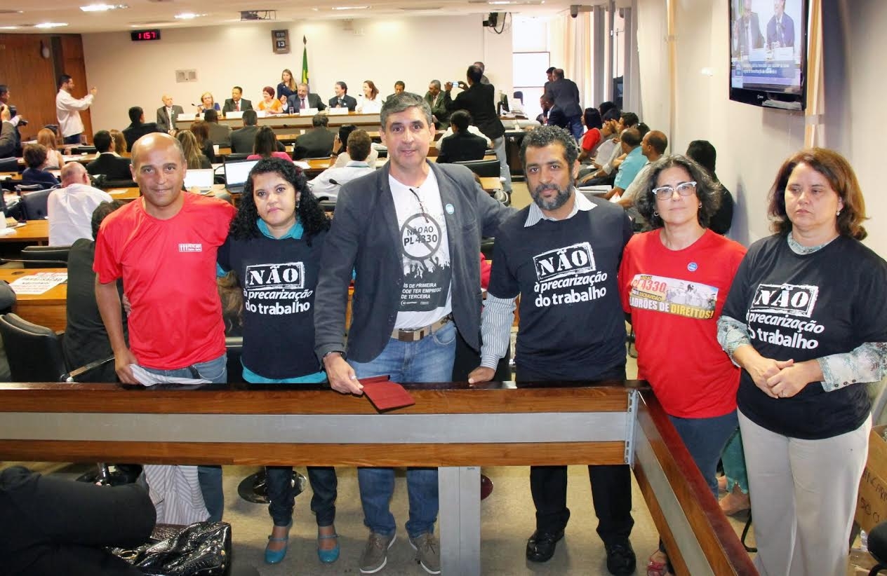 Os dirigentes sindicais José Avelino (presidente da Fetec-CUT/CN), Conceição Costa (diretora da Fetec-CUT/CN), Miguel Pereira (diretor da Contraf-CUT), Eduardo Araújo (presidente do Sindicato), Teresa Cristina (diretora do Sindicato) e Helenilda Cândido (diretora do Sindicato) participam de audiência sobre o PL 4330 no Senado em 2015 A Câmara dos Deputados aprovou o texto-base da Medida Provisória (MP) 695/2015, que concede novo prazo de permissão até 2018 para o Banco do Brasil e a Caixa Econômica Federal constituírem subsidiárias e adquirirem participação em empresas, inclusive no ramo de tecnologia da informação (TI). Agora a matéria aguarda apreciação pelo Senado Federal.