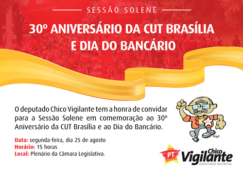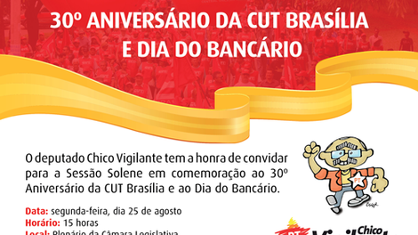Está prevista para o próximo dia 25/8 (segunda-feira), às 15h, uma sessão solene em homenagem ao Dia do Bancário e ao aniversário de 30 anos da Central Única dos Trabalhadores (CUT) de Brasília. O evento ocorrerá no plenário da Câmara Legislativa do Distrito Federal. A sessão é iniciativa do deputado distrital Chico Vigilante (PT-DF). “Toda a categoria está convidada a comparecer à sessão na Câmara Legislativa”, ressalta o presidente do Sindicato, Eduardo Araújo. 28 de agosto, Dia do Bancário O Dia do Bancário é motivo de comemoração. A história do 28 de agosto, Dia Nacional do Bancário, representa um marco na luta e na união da categoria em todo o Brasil. Nesta data, em 1951, foi realizada, no então cine Odeon, em São Paulo (SP), uma assembleia dos bancários paulistas, que tentavam negociar com os banqueiros reajuste de 40%, salário mínimo profissional e adicional por tempo de serviço. A categoria já havia recusado o dissídio coletivo e realizado paralisações de alguns minutos entre 12 de julho e 2 de agosto. Como os patrões mantinham-se intransigentes, os bancários decidiram na assembleia deflagrar a greve. Foram 69 dias de paralisação, durante os quais os bancários foram duramente reprimidos — alguns presos e espancados. Mas a categoria conseguiu reajuste de 31%. A volta ao trabalho não foi fácil. Muitos bancários foram demitidos, mas a greve foi vitoriosa, por resultar em conquistas para a categoria e porque derrubou uma lei antigreve do governo Eurico Gaspar Dutra. Além disso, lançou as bases do Dieese (Departamento Intersindical de Estatísticas e Estudos Socioeconômicos), criado em 1955. A data foi instituída oficialmente treze anos depois, pela Lei 4.368, sancionada em 1964. A proposta de oficializar o 28 de agosto como Dia do Bancário foi deliberada no 4° Congresso Nacional dos Bancários, em 1952. "O Dia do Bancário é um símbolo, para que não se apague de nossa memória a trajetória de lutas e de conquistas da nossa categoria. Cada bancário e bancária deve se orgulhar da história escrita pelos trabalhadores", afirmou o presidente do Sindicato, Eduardo Araújo. Da Redação