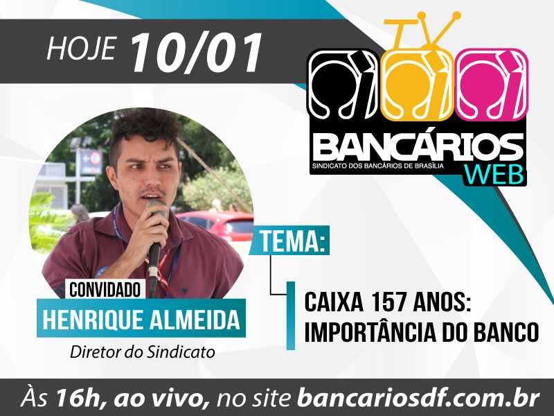 O TV Bancários Web desta quarta-feira (10) celebra e reforça a importância da Caixa Econômica Federal, que completa 157 anos no dia 12 de janeiro. Como convidado essa edição do programa recebe Henrique Almeida, diretor do Sindicato.