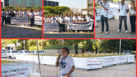 Os empregados e empregadas da TI da Caixa Econômica Federal realizaram novo ato público no edifício Matriz I, na manhã desta terça-feira (7), para chamar a atenção da empresa e reforçar que a categoria continua mobilizada para acompanhar os desdobramentos da implantação do plano de valorização, previsto no Acordo Coletivo de Trabalho para entrar em vigor em 2015.
