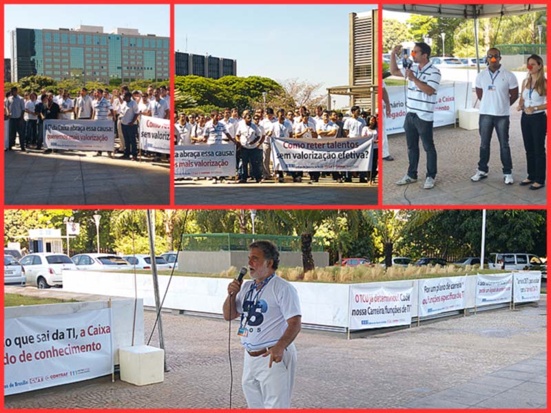 O ato realizado nesta terça no Matriz I simboliza a preocupação da categoria com a composição dos empregados que atuam nesta área tão vital para o futuro da Caixa. De acordo com Renato Shalders, a empresa tem perdido profissionais para outras empresas, uma vez que, entre as empresas de economia mista e estatais, a Caixa é a que apresenta o pior salário de ingresso dos empregados da área de TI.