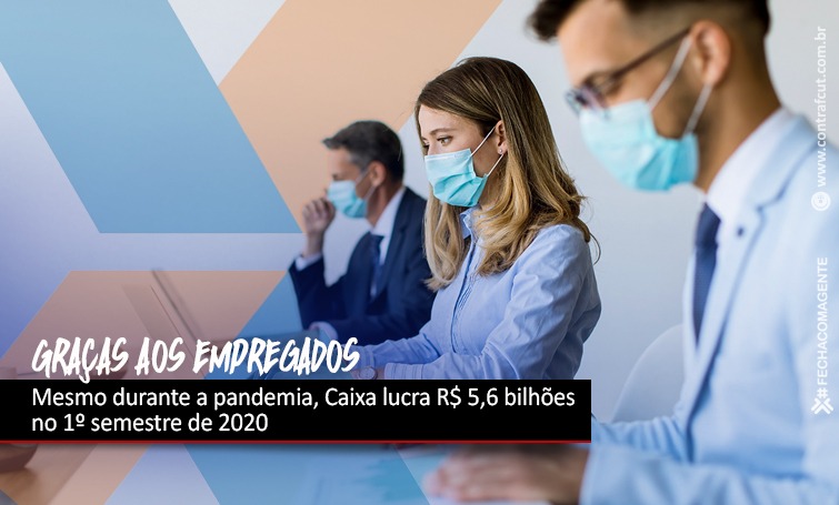 A Caixa lucrou R$ 5,6 bilhões no 1º semestre de 2020, queda de 31% em relação ao mesmo período de 2019 e de 16,1% em relação ao trimestre imediatamente anterior (o lucro no 2º trimestre foi de R$ 2,6 bilhões).