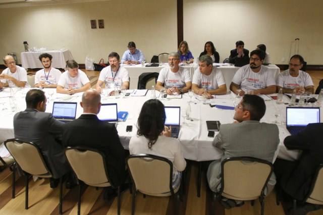 No início da negociação, a Comissão Executiva entregou camisetas da campanha “Mais empregados para a Caixa, Mais Caixa para o Brasil” aos negociadores da Caixa.