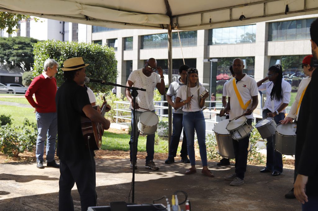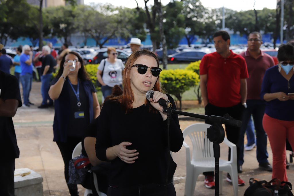 Os empregados e empregadas da Caixa não vão se calar. Aos som da bateria da Escola de Samba Capela Imperial de Taguatinga, os trabalhadores denunciaram nesta quinta-feira (6), em frente ao edifício Matriz II, a tentativa de reestruturação arbitrária anunciada por Pedro Guimarães sem debate com os bancários. Cerca de 800 empregados lotados em Brasília estão na lista do presidente da instituição.