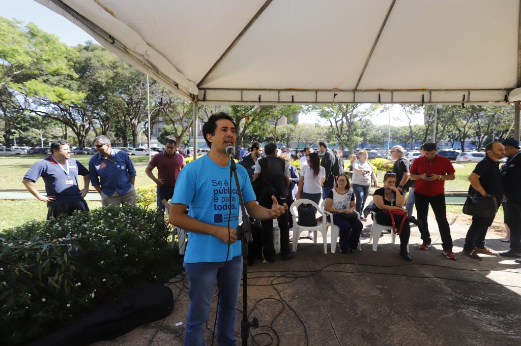Kleytton Morais, presidente eleito do Sindicato em maio para o triênio 2019-2022 e bancário do BB, destacou que “é com unidade que nós estabeleceremos esse espaço de diálogo e resistência. São várias as ameaças que cercam os bancos públicos. A intenção deste governo é fragilizar aqueles e aquelas que sustentam a Caixa, instrumentos reais da defesa da empresa. Não o farão e este ato marca o prenúncio da resistência dos empregados deste patrimônio do povo”.