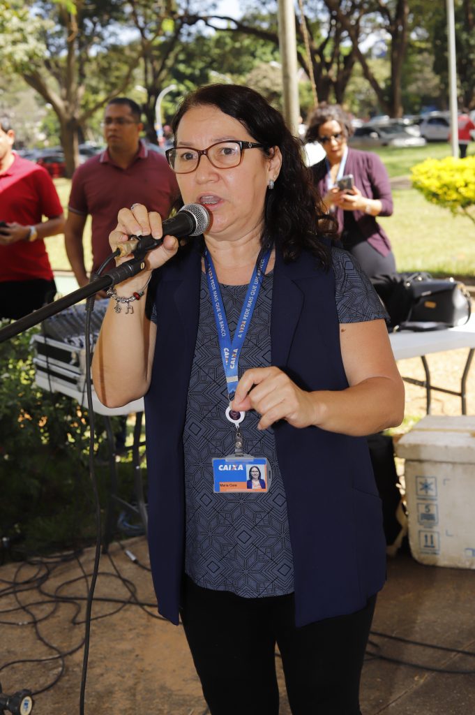 Bancária da Caixa aposentada e diretora do Sindicato, Marlene Dias chamou o presidente no diminutivo ao questionar: “Pedrinho, quando você está entre seus familiares, você não se envergonha de tentar acabar com a estrutura da Caixa Econômica Federal, uma empresa centenária?”