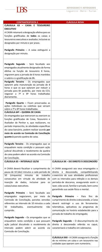 Diante do quadro, a representação dos empregados pediu uma pausa da reunião e, após o período, retornou com a contraproposta a seguir: