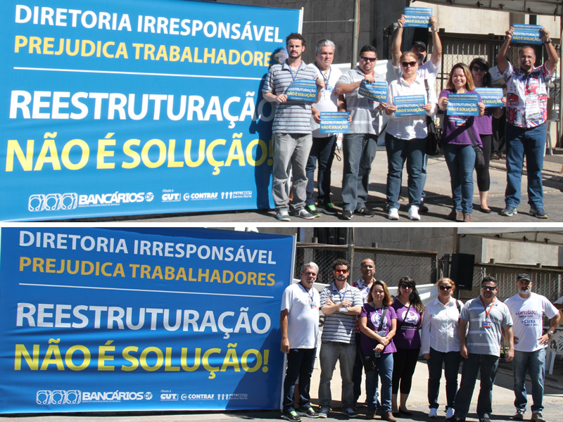Durante a atividade, que paralisou a unidade até o meio-dia, os empregados manifestaram insatisfação com a empresa, que deu início ao processo de reestruturação sem diálogo com os representantes dos trabalhadores, prejudicando milhares de empregados. Só em Brasília, 570 empregados foram realocados com cortes de funções.