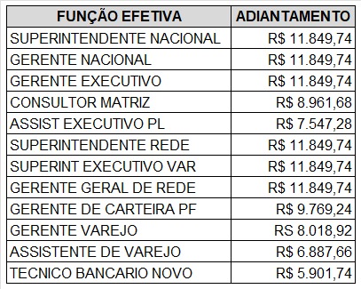 Em reunião ocorrida nesta terça-feira (19) com a Comissão Executiva dos Empregados (CEE), a Caixa Econômica Federal informou que os valores a serem pagos nesta quarta-feira (20) a título de adiantamento da Participação nos Lucros e/ou Resultados (PLR) serão maiores do que os estabelecidos no Acordo Coletivo de Trabalho (ACT) das empregadas e empregados da Caixa. O valor médio a ser pago nesta parcela de antecipação será de R$ 8.327,00 (veja abaixo a tabela com os valores por cargo). No total, 85.901 empregados serão contemplados.