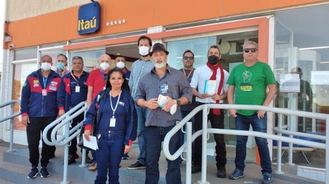 Os bancos, por sua vez, resistem muito para aceitar esse debate. Nos encontros com os bancários, clientes e usuários, o Sindicato dialoga sobre os absurdos promovidos pelas instituições bancárias. Um exemplo é a questão das portas giratórias que, apesar de serem um item de segurança inibitório de ataques às agências, a sua retirada abrange todos os bancos, aproveitando-se desse momento e da conjuntura. Além disso, tem a questão das demissões dos vigilantes, numa clara demonstração de falta de compromisso e responsabilidade social.