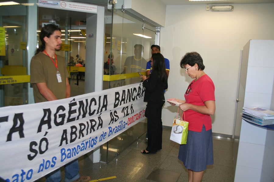 O Sindicato paralisou, das 11h ao meio dia desta quarta-feira 21, as atividades de seis agências (516 Sul, 507 Sul, 502 Sul, 504 Norte, 510 Norte e 515 Norte) do Banco do Brasil. As manifestações fazem parte da campanha Acorda Diretoria! e foi realizada em todo o país.
